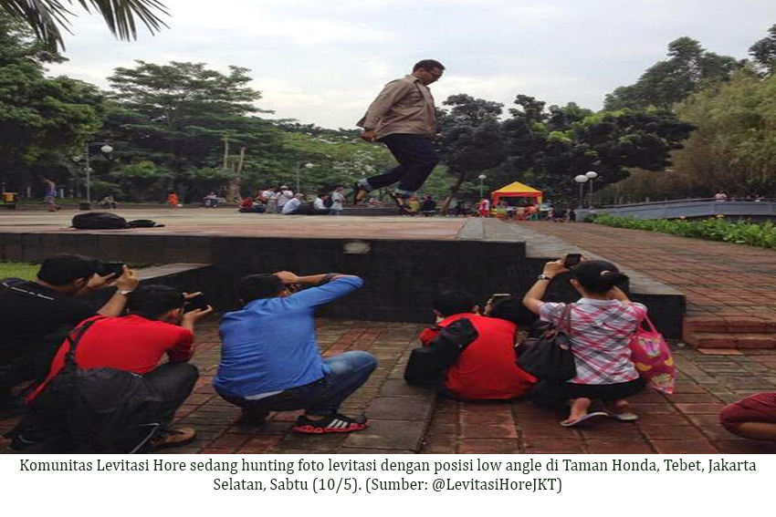 Salah satunya komunitas Levitasi Hore. Kehadiran komunitas ini menambah warna baru dalam dunia fotografi. Komunitas yang didirikan pada tanggal 25 Desember 2011 ini memakai teknik levitasi dalam setiap pengambilan gambarnya. Levitasi merupakan teknik fotografi yang membuat sesuatu atau seseorang tampak seolah-olah melayang tanpa menggunakan alat bantu.