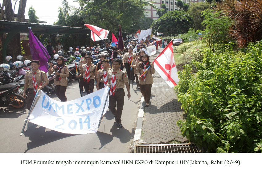 “Jancuk, Jancuk, jangan cuma kuliah!” teriak mahasiswa-mahasiswa yang tergabung dalam Unit Kegiatan Mahasiswa (UKM) Universitas Islam Negeri (UIN) Syarif Hidayatullah Jakarta saat karnaval keliling kampus pada hari pertama UKM EXPO. Acara tersebut merupakan agenda tahunan UKM yang diselenggarakan untuk mahasiswa baru saat masa Orientasi Pengenalan Akademik (OPAK). Namun, tahun ini berbeda. Acara istimewa UKM itu digelar setelah OPAK.