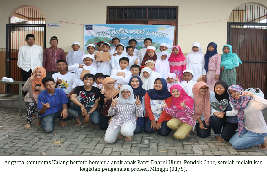 Salah satu anggota Kalang, Adinda Mutiara Kasih mengatakan, kegiatan pengenalan profesi dipilih karena melihat banyaknya anak di panti asuhan belum memiliki cita-cita. “Kami mengharapkan melalui pengenalan profesi sejak dini, mereka dapat memiliki sebuah cita-cita. Sehingga arah pendidikan yang mereka tempuh menjadi lebih pasti,” ungkap Adinda, Senin (1/6).