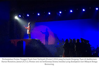 Demikianlah sepenggal cerita dari Pentas Tunggal Pojok Seni Tarbiyah (Postar) 2016 yang bertajuk Dongeng Tuan, Jumat (4/11). Seni drama karya Ajeng Restiyani ini diadaptasi dari dongeng asal provinsi Riau “Hikayat Bunga Kemuning”. Ketua Postar, Rizal Hanif Masyhur mengatakan, pentas seni kali ini sengaja bertemakan dongeng dengan tujuan membumikan lagi dongeng-dongeng di tengah masyarakat. “Kita ingin dongeng kembali diingat masyarakat,” ujarnya.