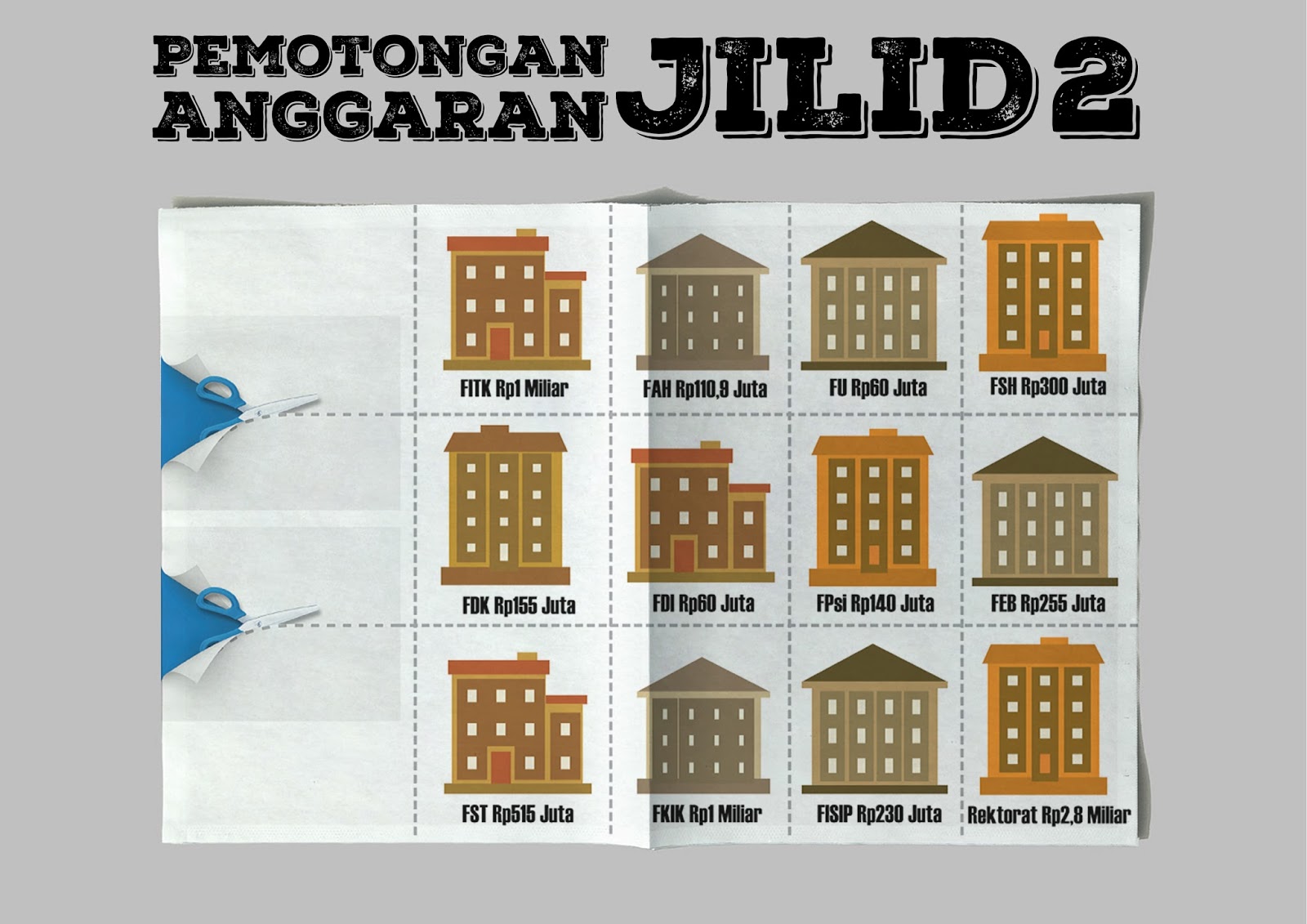 UIN Jakarta mendapat pemangkasan BOPTN. Total pemotongan anggaran yang harus diterima UIN Jakarta sepanjang tahun 2016 ini mencapai Rp42 miliar. Imbasnya, beberapa kegiatan mahasiswa dan pegawai terhambat.
