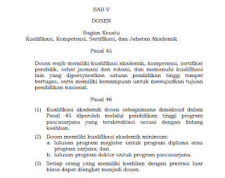 Padahal berdasarkan Pasal 45 Undang-Undang (UU) No. 14 Tahun 2005 tentang Guru dan Dosen menjelaskan bahwa dosen wajib memiliki kualifikasi akademik, kompetensi, sertifikat pendidik, sehat jasmani dan rohani. Tak hanya itu, dosen juga harus memenuhi kualifikasi lain yang dipersyaratkan satuan pendidikan tinggi tempat bertugas, serta memiliki kemampuan untuk mewujudkan tujuan pendidikan nasional.