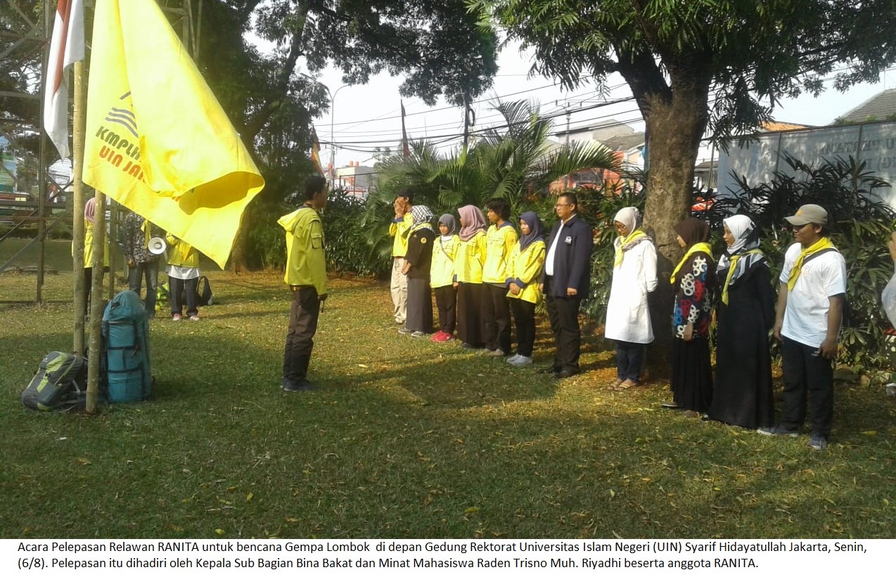 Acarapelepasan tim relawan dihadiri oleh Kepala Sub Bagian Bina Bakat dan Minat Mahasiswa UIN Jakarta Raden Trisno Muh. Riyadhi. Dalam sambutannya, ia berharap agar RANITA menjalankan tugas dengan baik, kembali dengan selamat, tetap melaporkan segala informasi dan perkembangan yang terjadi Lombok. “Tetap menjaga nama baik almamater,” pintanya.