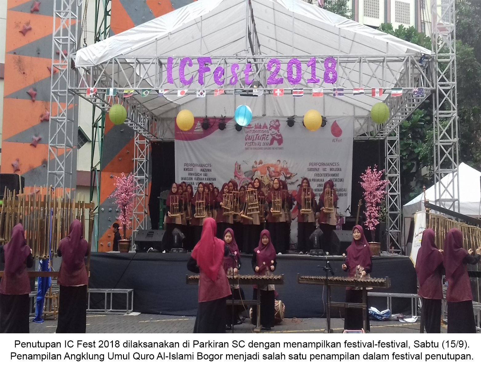 Rangkaian acara yang telah berlangsung pun ditutup dengan menyuguhkan festival pada 15 September di parkiran SC. Terdapat suguhan permainan alat musik dan tarian khas daerah Indonesia. Ditampilkan pula tarian modern dari luar negeri, seperti Korea Selatan, Jepang dan Rusia yang semakin menambah kemeriahan acara festival. Di samping itu, para pengunjung juga bisa menikmati makanan-makanan yang dijajakan dalam bazar makanan.