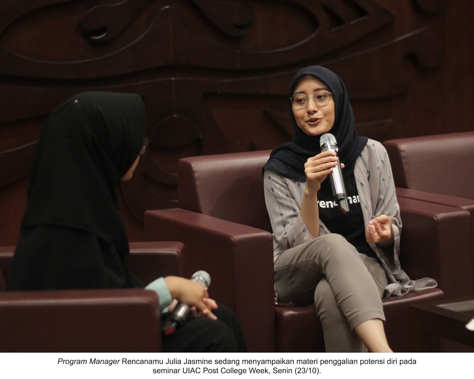 Universitas Indonesia Achievement Community (UIAC) menggelar seminar Post College Week pada Senin—Selasa (23—24/9) lalu. Seminar ini membahas tentang kiat-kiat alumni baru sebuah perguruan tinggi sebelum menghadapi dunia kerja. Acara ini digelar di Balai Sidang Universitas Indonesia (UI) dan dihadiri sekitar puluhan peserta.
