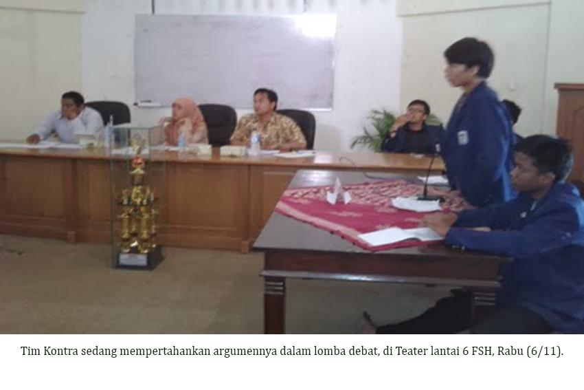 Debat yang bertema Membangun Sikap Kritis Terhadap Permasalahan Kemasyarakatan berlangsung dari Rabu (6/11) hingga Selasa (12/11). Acara tersebut diikuti oleh tujuh tim. Empat tim berasal dari FSH, satu tim dari Fakultas Ilmu Dakwah dan Ilmu Komunikasi (FIDKOM) dan dua tim dari Fakultas Ilmu Sosial dan Ilmu Politik (FISIP). Masing-masing tim terdiri dari tiga orang.