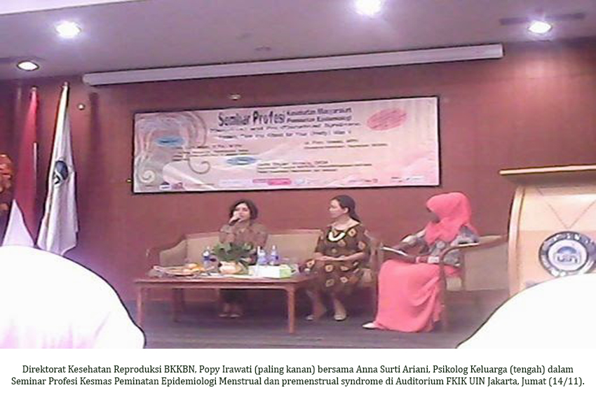 Menstrual dan premenstrual syndrome merupakan masalah kesehatan reproduksi yang umum dialami perempuan. Namun kebanyakan perempuan tidak menghiraukan masalah tersebut. Hal ini terbukti dalam penelitian yang dilakukan mahasiswa Peminatan Epidemiologi angkatan 2011, Jurusan Kesehatan Masyarakat (Kesmas), Fakultas Kedokteran dan Ilmu Kesehatan (FKIK) UIN Jakarta. Hasil penelitian itu dipublikasi pada seminar profesi yang berlangsung di Auditorium FKIK pada Jumat (14/11).