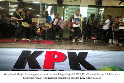 Guna menguatkan lembaga Komisi Pemberantasan Korupsi (KPK), beberapa Lembaga Swadaya Masyarakat (LSM), Lembaga Bantuan Hukum (LBH), dan Komisi untuk Orang Hilang dan Korban Kekerasan (Kontras) mengadakan acara Panggung Rakyat Anti Korupsi di halaman gedung KPK, Jumat (20/2).