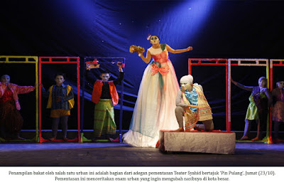 Demikian penutup pentas yang diselenggarakan Teater Syahid bertajuk Pin Pulang, Jumat (23/10).Penyusun naskah, Amalia Rosyidah menuturkan, acara yang diselenggarakan di Aula Student Center, Universitas Islam Negeri (UIN) Syarif Hidayatullah Jakarta ini, bertujuan mempertontonkan keadaan para urban di Indonesia sekarang ini. “Teater ini menceritakan harapan para urban untuk hidup lebih baik di kota besar,” ujar Amalia, Jumat (23/10)