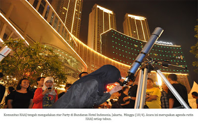 Selain berdiskusi, kegiatan rutin HAAJ lainnya ialah Star Party. Para peserta yang ikut dalam kegiatan ini dapat melihat galaksi mengunakan teleskop. Star Party sebagai praktik langsung dari berbagai materi tentang astronomi yang telah didiskusikan sebelumnya. Selama 2016, star party dilakukan sebanyak lima kali di daerah Bogor dan Jakarta. Kegiatan ini diharapkan mampu membuka wawasan peserta tentang ilmu antariksa. “Agar anggota HAAJ lebih serius menggeluti ilmu astronomi,” kata Indra.
