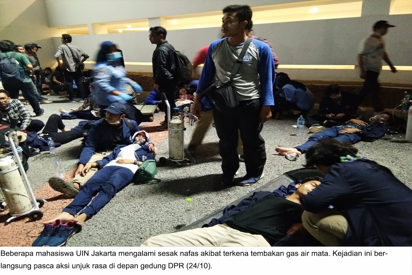 Seperti yang dialami mahasiswi Fakultas Tarbiyah dan Ilmu Keguruan (FITK) UIN Jakarta Amelia Putri, dirinya menceritakan pengalaman pahitnya ketika mengikuti aksi unjuk rasa. Amelia telah lama mengidap penyakit Infeksi Saluran Pernapasan Akut (ISPA). Nahas, penyakitnya tersebut kambuh karena paparan gas air mata. Akibatnya, ia pun terpaksa mendapatkan perawatan medis. “Saat terkena gas air mata aku kambuh penyakitnya,” jelas Amelia, Kamis (3/10).