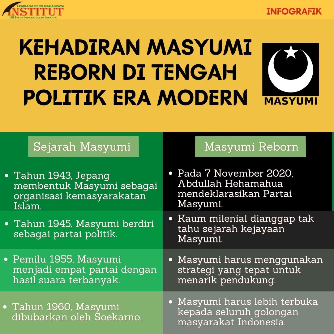 Ketua Majelis Partai Masyumi Abdullah Hehamahua mendeklarasikan berdirinya kembali Partai Masyumi pada Sabtu (7/11), bertepatan dengan 75 tahun peringatan lahirnya partai tersebut. Pendeklarasian bertajuk “Masyumi Reborn” ini tentu menjadi pusat perhatian dunia perpolitikan Indonesia.