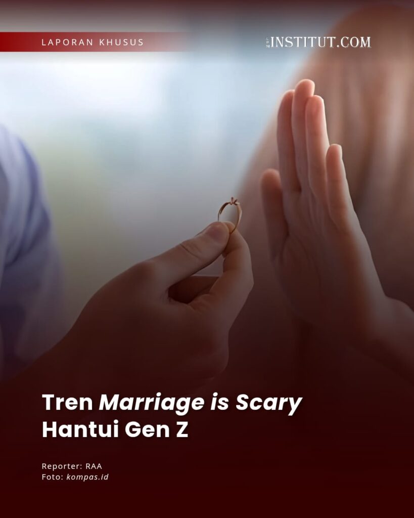 Marriage is scary sedang populer dibicarakan kalangan Generasi Z (Gen Z)—anak muda kelahiran tahun 1997 sampai 2012—di media sosial seperti TikTok, Instagram, dan X. Mengutip dari liputan6, Marriage is scary merupakan tren konten di media sosial yang menggambarkan fenomena seseorang takut untuk menikah. Konten tersebut terdiri dari video kekerasan dalam rumah tangga (KDRT), foto bukti perselingkuhan, serta postingan aib pasangan yang beredar luas di berbagai platform media sosial.